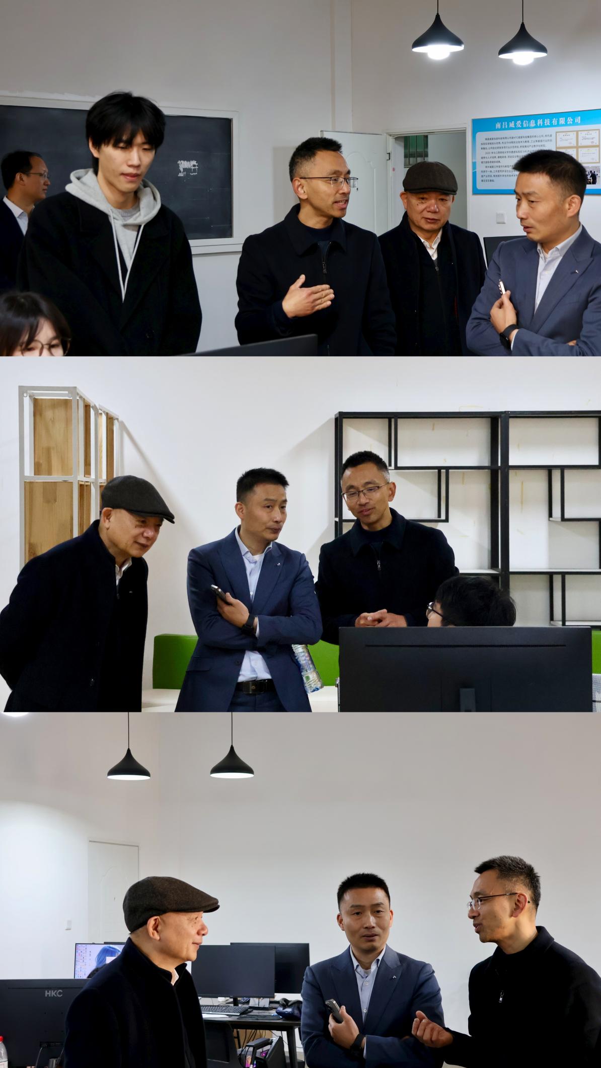 随后考察团步行至紫电楼产教融合基地,参观各企业工作室,现场观看校企联合研发项目成果展示,并与企业教师、工作室学生面对面交流商业项目的研发逻辑与交付体会,直观感受学院“引企驻校”模式下,学生在真实项目中成长的实践育人氛围。此外,基地引入8家企业入驻校园、共建10余个联合创新中心的“引企驻校”模式,以及25个行业创新班、37个技能强化班的全覆盖培养体系,让考察团对学院产教融合的深度与广度有了全面认知。