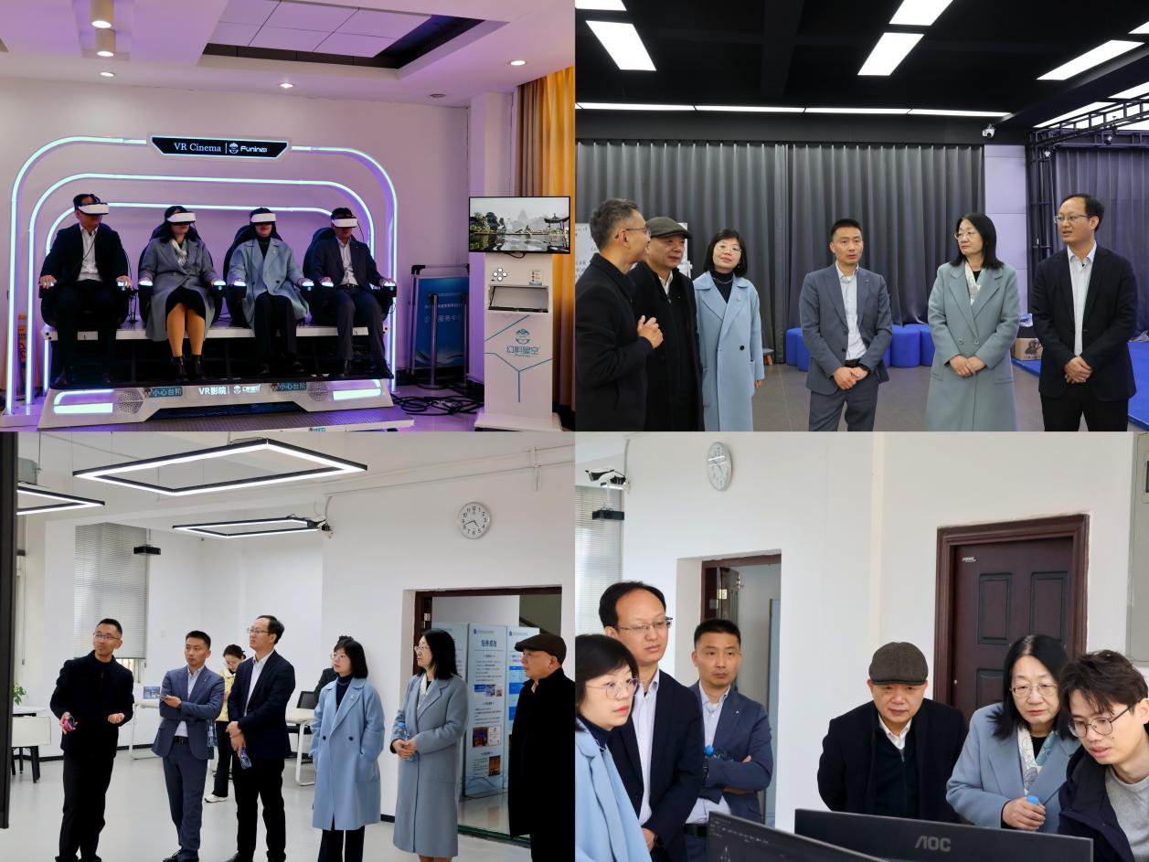 虚拟现实(VR)现代产业学院 2025年12月31日上午,上海对外经贸大学WTO亚太培训中心主任、上海市国际贸易学会会长黄建忠一行5人莅临麻豆在线 ,围绕VR技术与数字经济、国际贸易领域的融合应用、人才培养创新及产教深度融合举措与建设成效等议题开展深度调研。学院院长万征、党委书记彭敏,副院长李华旸、党委副书记刘前,党委委员兼教务办主任吴洁及相关部门负责人陪同考察。