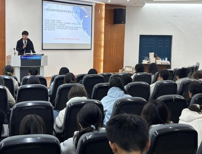优秀学生虞磊则从自身项目的灵感来源入手,以“好点子的诞生”为主题,分享了问题洞察的三步法,旨在助力同学们挖掘生活中的创新机遇,摆脱“无项目可做”的困境。