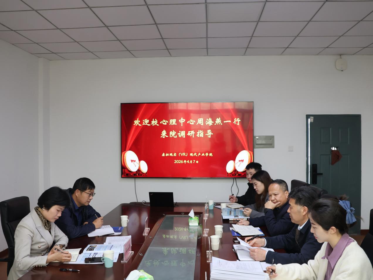 周海燕对学院在心理健康教育方面的扎实举措给予充分肯定,并就如何进一步优化心理摸排工作、扎实做好“一生一档、一生一策”、加强校院资源共享提出了指导性建议。在交流研讨环节,双方结合具体案例与工作体会,围绕VR/AI技术赋能心理工作、重点人群动态管理模式、辅导员心理育人能力提升等议题,展开了深入而务实的探讨。