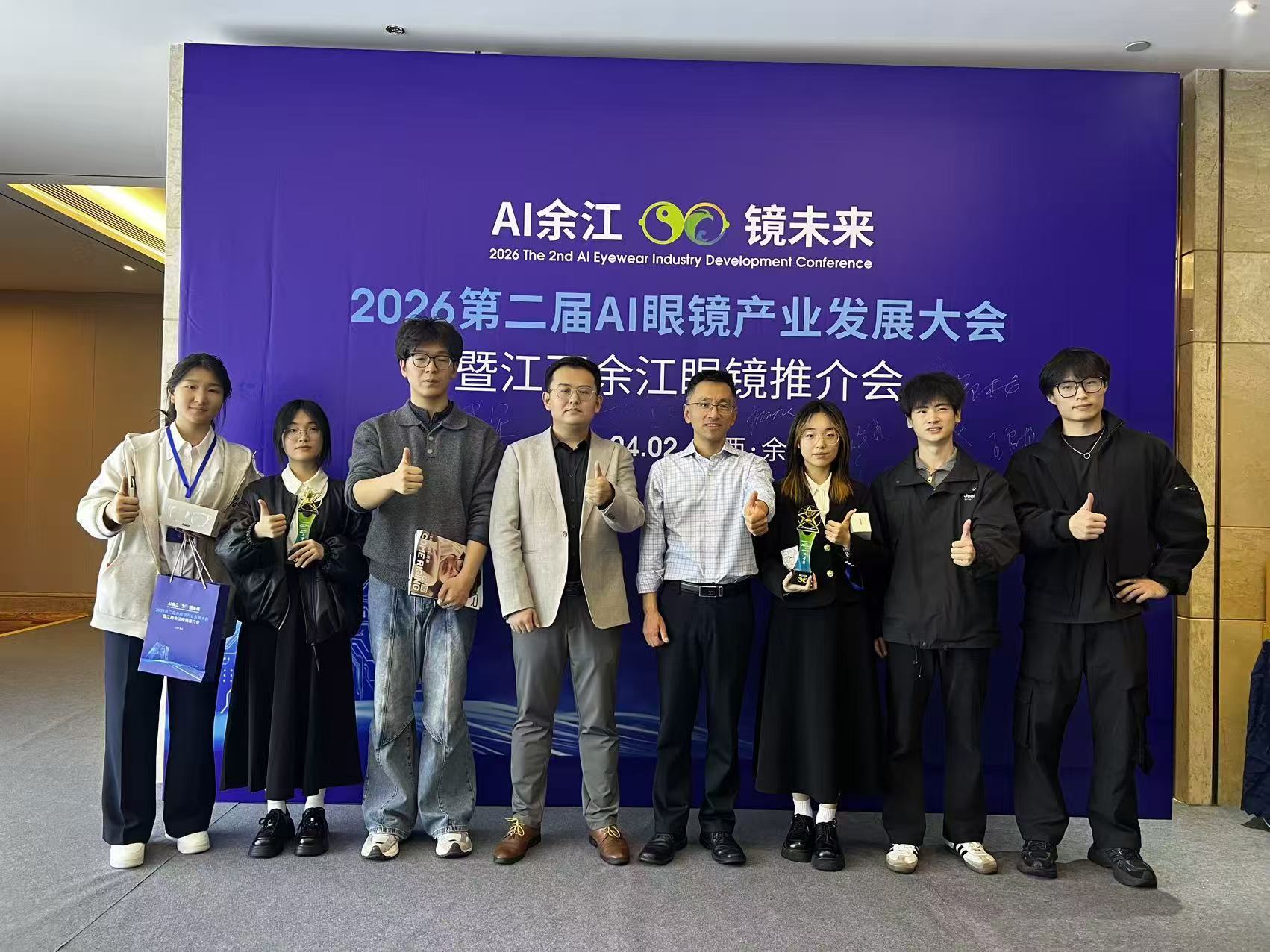 4月2日,万征一行出席2026 第二届AI眼镜产业发展大会,认真聆听大会主题汇报,全面了解AI眼镜产业发展趋势、技术创新方向与行业应用前景。在大会同期举办的竞赛评选中,学院学子斩获佳绩:VR251班陈黄婧团队荣获团队三等奖,数媒253班周子涵荣获个人创意设计二等奖,充分展现了学院在虚拟现实、数字媒体领域的育人成果与学生创新实践能力。